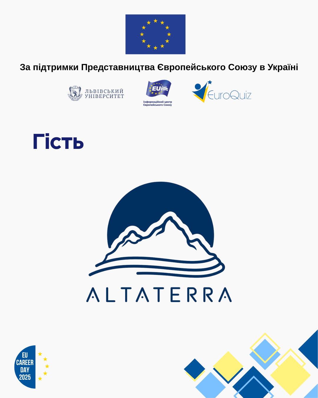 АЛЬТАТЕРРА – це сучасне рекрутингове та кар’єрне агентство, яке поєднує потреби кандидатів та роботодавців. Ми супроводжуємо кандидатів на всіх етапах: допомагаємо визначити професійні цілі, створити змістовне резюме, підготуватися до співбесіди та розказати свій професійний досвід через реальні досягнення — так, щоб роботодавець одразу бачив потенційний внесок у бізнес. Наш підхід базується на практичному міжнародному досвіді — від роботи у фінансових установах на Уолл-стріт до міжнародних організацій та європейських парламентів.