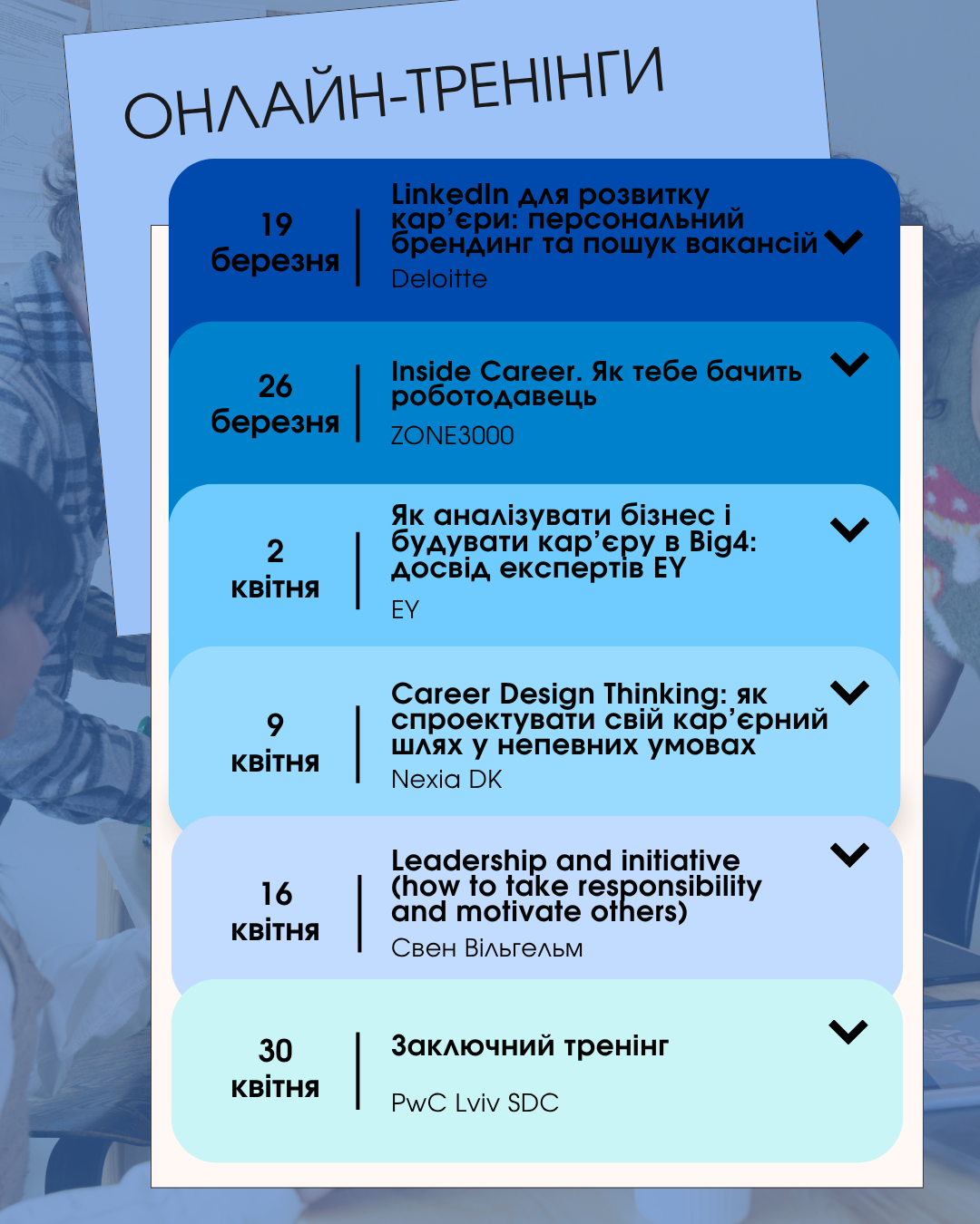 Графік заходів на воркшопи з’являтимуться на наших офіційних ресурсах. Не проґав свій шанс побудувати кар’єру мрії!