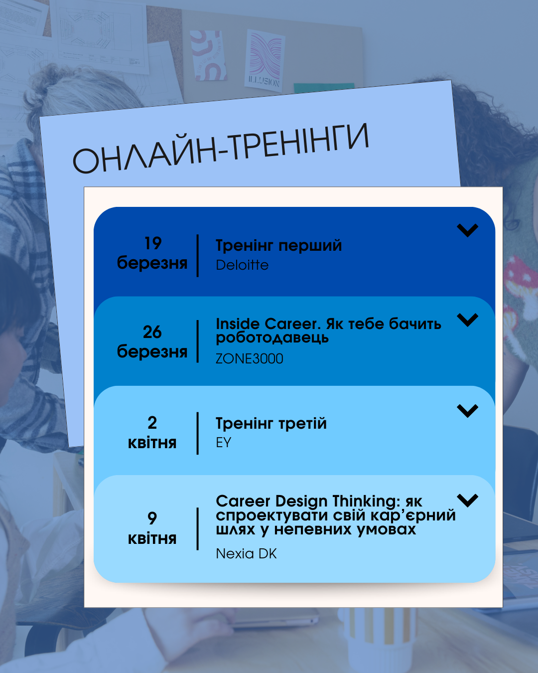 Графік заходів на воркшопи з’являтимуться на наших офіційних ресурсах. Не проґав свій шанс побудувати кар’єру мрії!