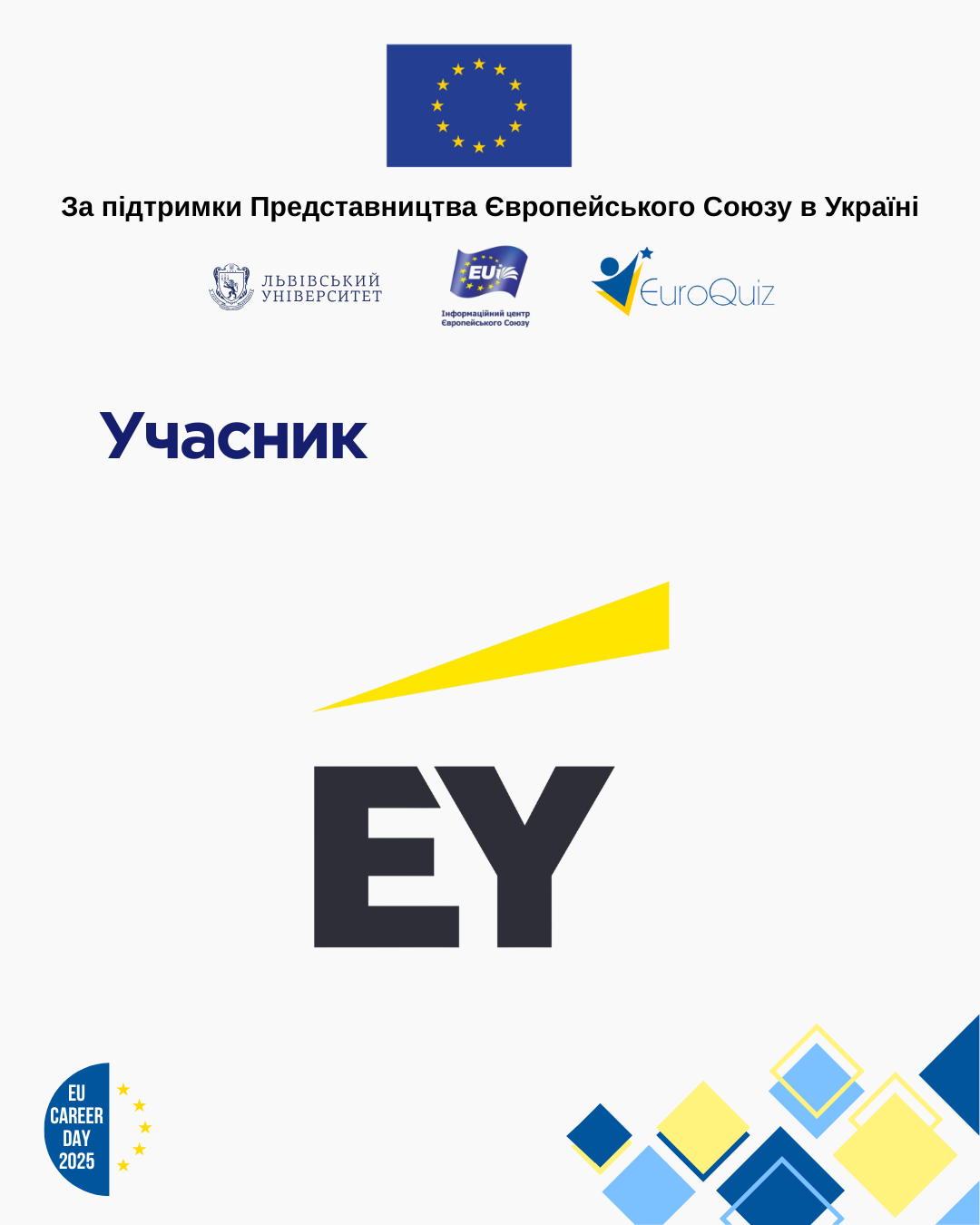 EY – це глобальна організація, що надає професійні послуги в сферах аудиту, консалтингу, права, стратегії, оподаткування та супроводу угод. EY входить до «великої четвірки» найбільших аудиторсько-консалтингових компаній у світі. В Україні EY працює понад 30 років, об’єднуючи сотні фахівців, які щодня формують краще робоче середовище для клієнтів, суспільства та кожного з нас.