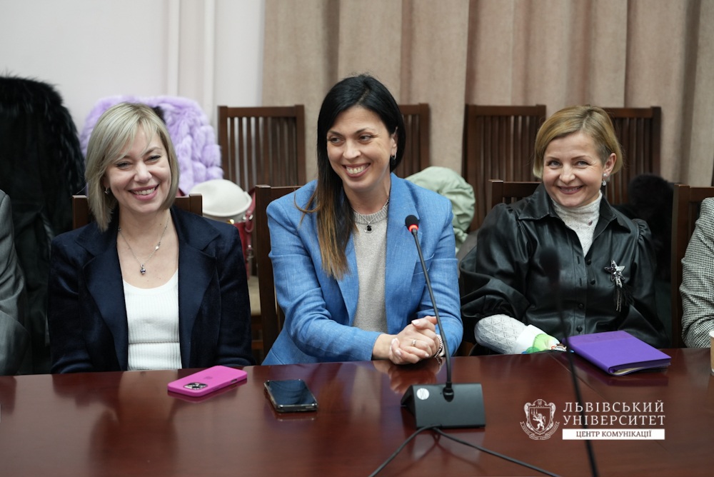 Проректорка окреслила бачення ролі Університету в системі стратегічного партнерства з бізнесом та інститутами громадянського суспільства, наголосивши на ключових пріоритетах такої співпраці. «Мені дуже імпонує слово «партнерство», оскільки воно справді лежить в основі дуже багатьох суспільно значущих важливих ініціатив. І сьогодні ми започатковуємо чи продовжуємо нашу співпрацю Університету із громадською організацією «Українська платформа “Жінки в бізнесі”». Я переконана, що ця синергія взаємодії університету, громадських організацій, бізнесу, а також влади і громадянського суспільства завжди сприятиме великим масштабним ініціативам і буде потужним рушієм розвитку сильної держави, посилення національної стійкості, а також повоєнного відновлення України. Стратегічне партнерство з бізнесом та інституціями громадянського суспільства є одним із ключових пріоритетів діяльності Львівського університету. Особливу увагу наш Університет приділяє підтримці наукових проєктів, спрямованих на повоєнну відбудову України», – зауважила Христина Міліянчук.